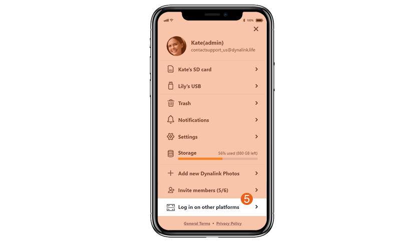 5Open the Dynalink Photos app on your phone and click "Log in on other platforms"